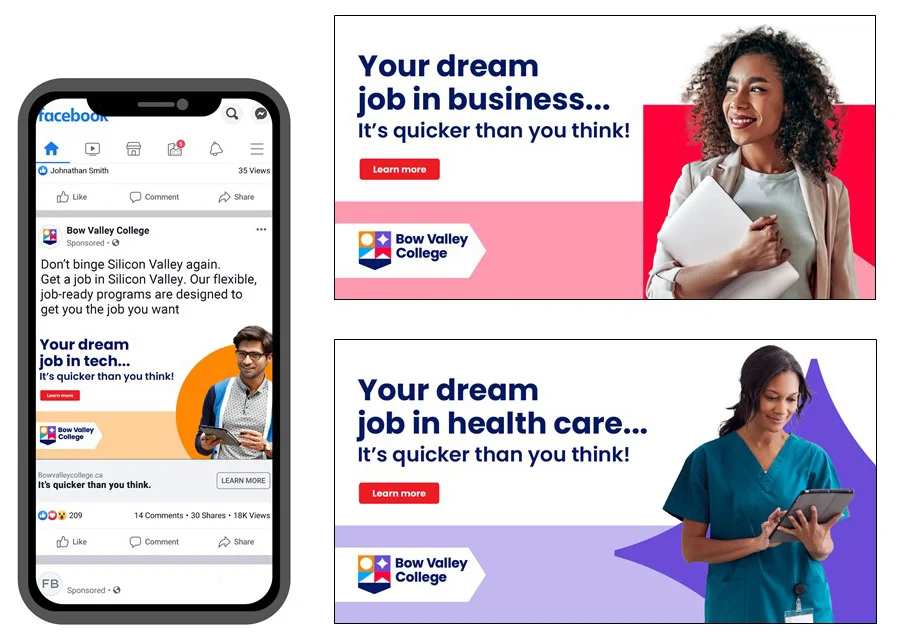 As Creative Director and Art Director, I led the development and execution of Bow Valley College’s first year-round brand awareness campaign—a multi-platform initiative spanning paid digital, out-of-home, radio, and commercial spots.
